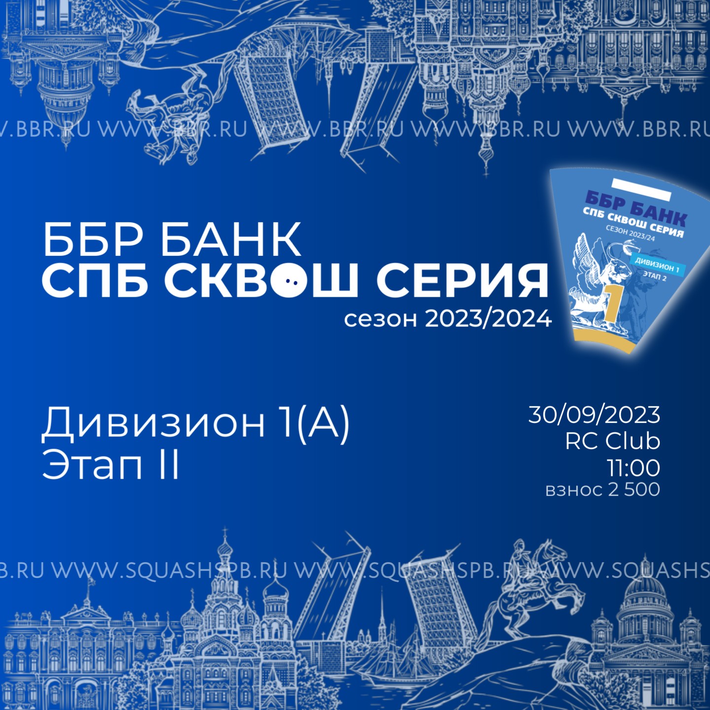 | ББР Банк Санкт-Петербург Сквош Серия II этап 1 Дивизион (категория А) | | | | | Приглашаем на турнир СЕЗОНА 2023/24 30 сентября, 11.00, клуб "RC Club" | - Сезон будет включать 9 этапов с 1 сентября по 31 мая и делиться на 2 части. 1 часть: 1-8 этап (в зачет идут 7 этапов) – Регулярный Чемпионат Серии. 2 часть: 9-й этап – Финальный турнир Серии.